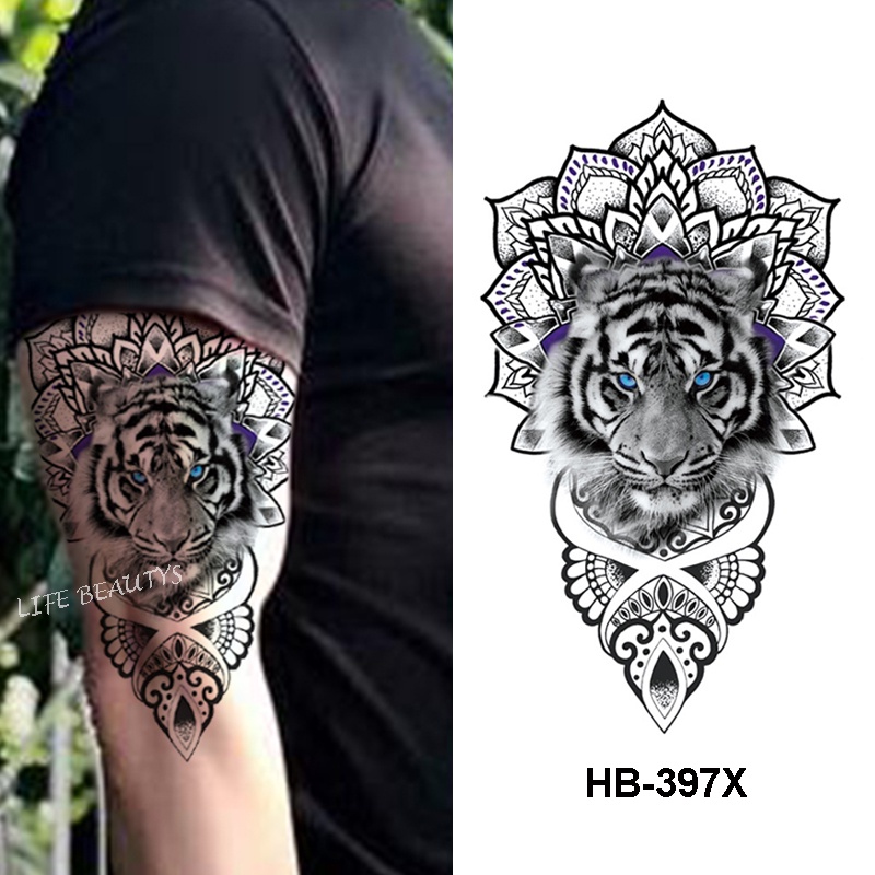 26. Tiger Mandala Flowers Temporary Tattoo Fake Sticker Womens Mens Arm Leg | Ebay