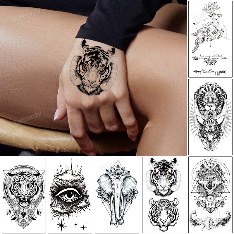 12. Lion Tiger Cool Temporary Tattoo Sticker Fashion Wolf Waterproof Animal Body Art Arm Fake Removable Tatoo Men Women Pers | Shopee Malaysia